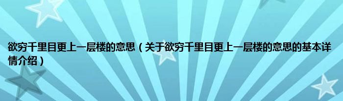 本文关于欲穷千里目更上一层楼的意思的基本详情介绍就讲解完毕,希望对大家有所帮助。