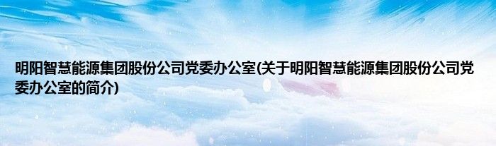1、 明阳智慧能源集团股份公司党委办公室是明阳智慧能源集团股份公司党委的办事机构 。