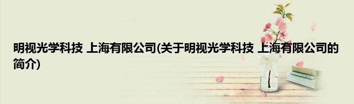 大家好,明视光学科技 上海有限公司,关于明视光学科技 上海有限公司的简介很多人还不知道,现在让我们一起来看看吧!