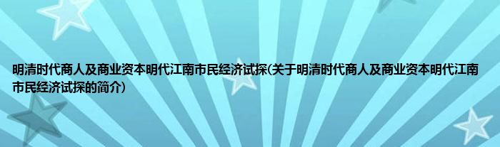 大家好,明清时代商人及商业资本明代江南市民经济试探,关于明清时代商人及商业资本明代江南市民经济试探的简介很多人还不知道,现在让我们一起来看看吧!