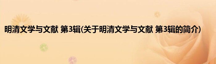 大家好,明清文学与文献 第3辑,关于明清文学与文献 第3辑的简介很多人还不知道,现在让我们一起来看看吧!