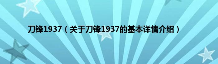 本文关于刀锋1937的基本详情介绍就讲解完毕,希望对大家有所帮助。