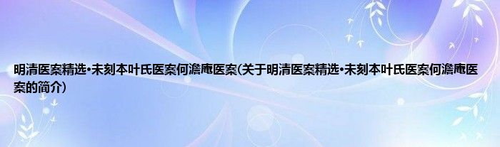 本文关于明清医案精选·未刻本叶氏医案何澹庵医案的简介就讲解完毕,希望对大家有所帮助。