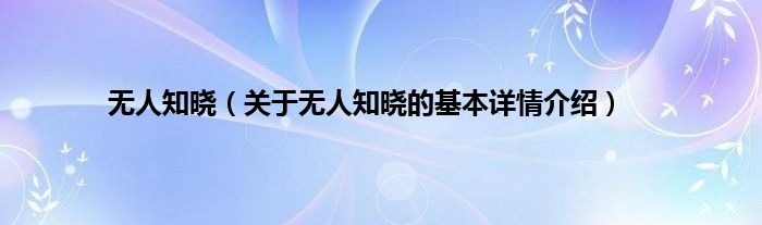 本文关于无人知晓的基本详情介绍就讲解完毕,希望对大家有所帮助。