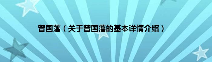 本文关于曾国藩的基本详情介绍就讲解完毕,希望对大家有所帮助。