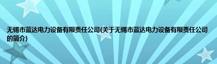 本文关于无锡市蓝达电力设备有限责任公司的简介就讲解完毕,希望对大家有所帮助。