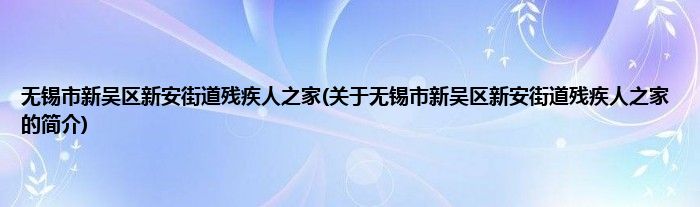 本文关于无锡市新吴区新安街道残疾人之家的简介就讲解完毕,希望对大家有所帮助。