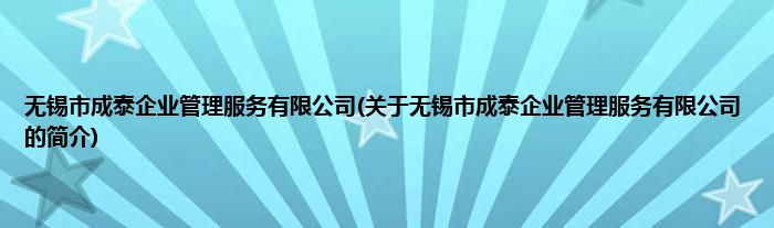 本文关于无锡市成泰企业管理服务有限公司的简介就讲解完毕,希望对大家有所帮助。