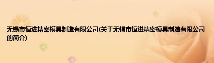 无锡市恒进精密模具制造有限公司(关于无锡市恒进精密模具制造有限公司的简介)