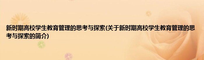 新时期高校学生教育管理的思考与探索(关于新时期高校学生教育管理的思考与探索的简介)