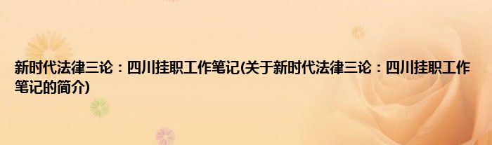本文关于新时代法律三论:四川挂职工作笔记的简介就讲解完毕,希望对大家有所帮助。