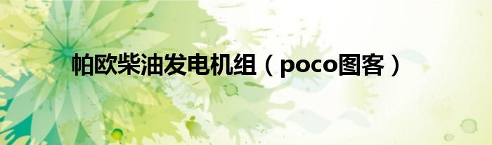 大家好,精选小编来为大家解答以上问题。帕欧柴油发电机组,poco图客很多人还不知道,现在让我们一起来看看吧!