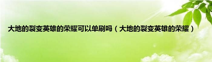 大家好,精选小编来为大家解答以上问题。大地的裂变英雄的荣耀可以单刷吗,大地的裂变英雄的荣耀很多人还不知道,现在让我们一起来看看吧!