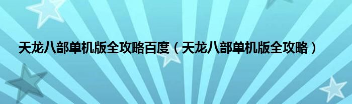 大家好,精选小编来为大家解答以上问题。天龙八部单机版全攻略百度,天龙八部单机版全攻略很多人还不知道,现在让我们一起来看看吧!