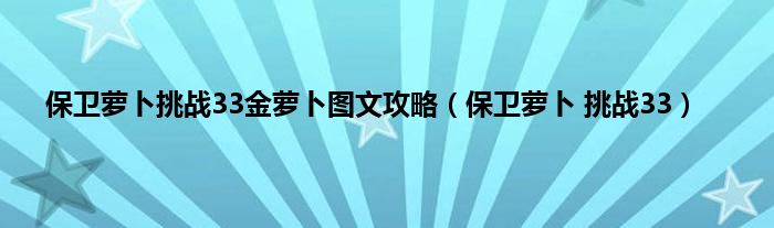 大家好,精选小编来为大家解答以上问题。保卫萝卜挑战33金萝卜图文攻略,保卫萝卜 挑战33很多人还不知道,现在让我们一起来看看吧!