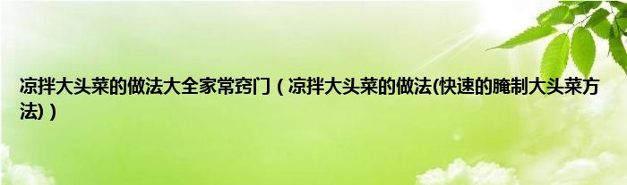 大家好,小科来为大家解答以上问题。凉拌大头菜的做法大全家常窍门,凉拌大头菜的做法(快速的腌制大头菜方法)很多人还不知道,现在让我们一起来看看吧!
