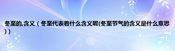 大家好,小科来为大家解答以上问题。冬至的,含义,冬至代表着什么含义呢(冬至节气的含义是什么意思)很多人还不知道,现在让我们一起来看看吧!