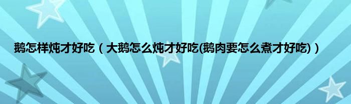 大家好,小科来为大家解答以上问题。鹅怎样炖才好吃,大鹅怎么炖才好吃(鹅肉要怎么煮才好吃)很多人还不知道,现在让我们一起来看看吧!