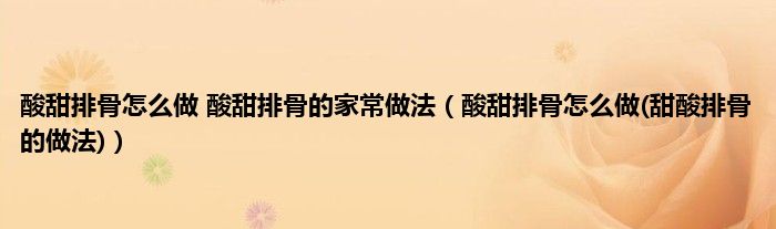 大家好,小科来为大家解答以上问题。酸甜排骨怎么做 酸甜排骨的家常做法,酸甜排骨怎么做(甜酸排骨的做法)很多人还不知道,现在让我们一起来看看吧!