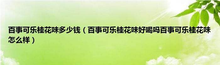 以上“百事可乐桂花味好喝吗,百事可乐桂花味怎么样"为大家介绍到这里,希望对你有所帮助。