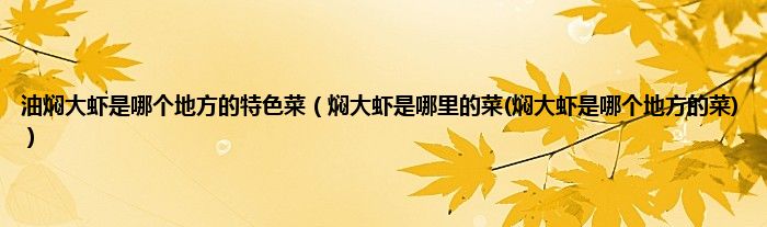 大家好,小科来为大家解答以上问题。油焖大虾是哪个地方的特色菜,焖大虾是哪里的菜(焖大虾是哪个地方的菜)很多人还不知道,现在让我们一起来看看吧!