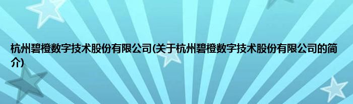 本文关于杭州碧橙数字技术股份有限公司的简介就讲解完毕,希望对大家有所帮助。