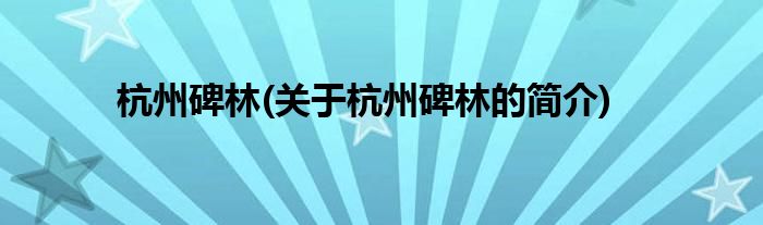 大家好,杭州碑林,关于杭州碑林的简介很多人还不知道,现在让我们一起来看看吧!