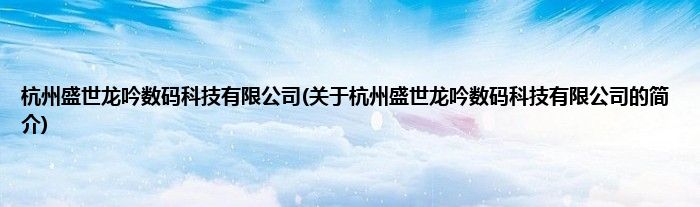 本文关于杭州盛世龙吟数码科技有限公司的简介就讲解完毕,希望对大家有所帮助。