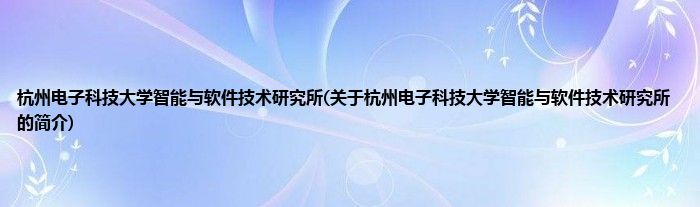 大家好,杭州电子科技大学智能与软件技术研究所,关于杭州电子科技大学智能与软件技术研究所的简介很多人还不知道,现在让我们一起来看看吧!