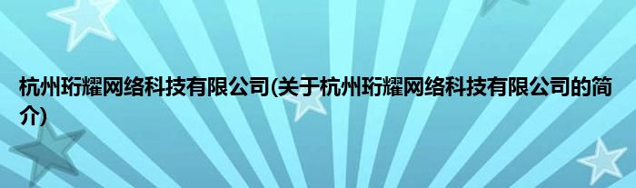 本文关于杭州珩耀网络科技有限公司的简介就讲解完毕,希望对大家有所帮助。