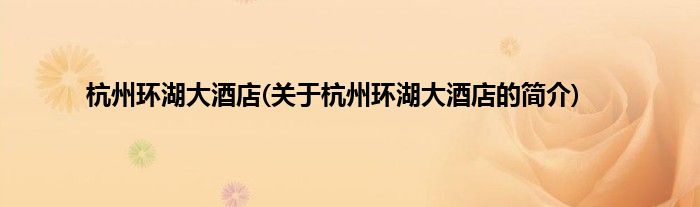 本文关于杭州环湖大酒店的简介就讲解完毕,希望对大家有所帮助。