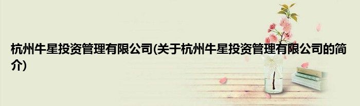 本文关于杭州牛星投资管理有限公司的简介就讲解完毕,希望对大家有所帮助。