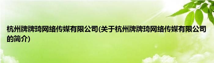 本文关于杭州牌牌琦网络传媒有限公司的简介就讲解完毕,希望对大家有所帮助。