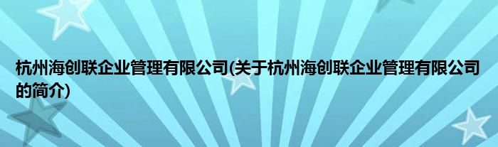 本文关于杭州海创联企业管理有限公司的简介就讲解完毕,希望对大家有所帮助。