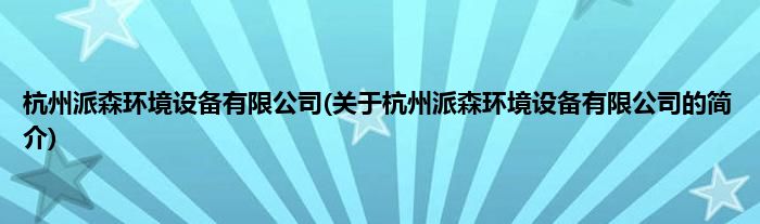 本文关于杭州派森环境设备有限公司的简介就讲解完毕,希望对大家有所帮助。