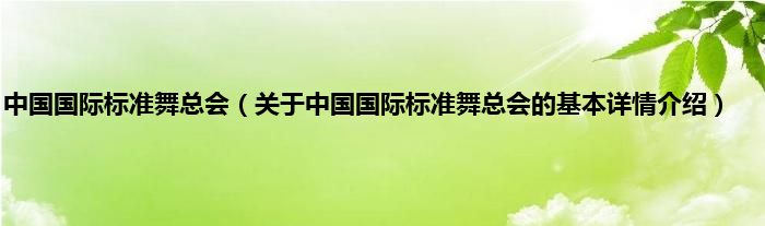 本文关于中国国际标准舞总会的基本详情介绍就讲解完毕,希望对大家有所帮助。