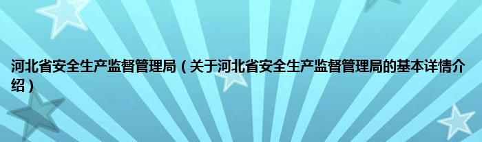 本文关于河北省安全生产监督管理局的基本详情介绍就讲解完毕,希望对大家有所帮助。