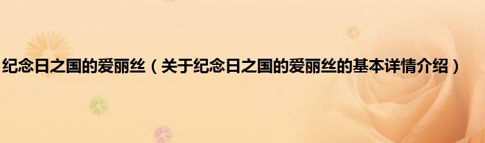 本文关于纪念日之国的爱丽丝的基本详情介绍就讲解完毕,希望对大家有所帮助。