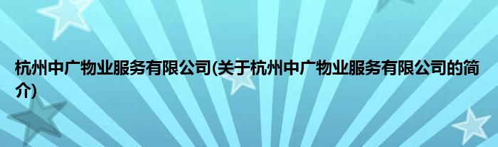 本文关于杭州中广物业服务有限公司的简介就讲解完毕,希望对大家有所帮助。