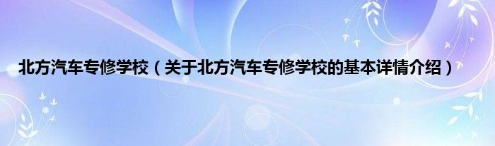 本文关于北方汽车专修学校的基本详情介绍就讲解完毕,希望对大家有所帮助。