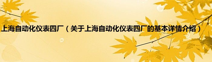 本文关于上海自动化仪表四厂的基本详情介绍就讲解完毕,希望对大家有所帮助。