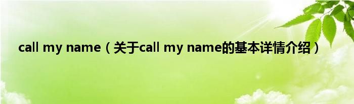 本文关于call my name的基本详情介绍就讲解完毕,希望对大家有所帮助。