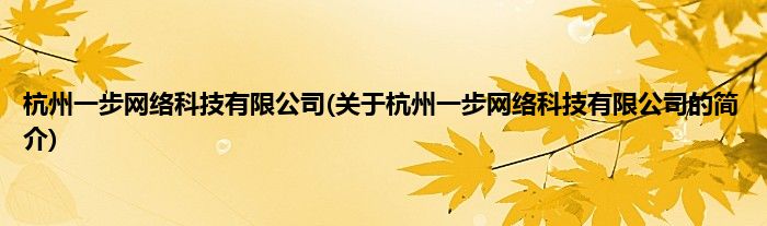 本文关于杭州一步网络科技有限公司的简介就讲解完毕,希望对大家有所帮助。