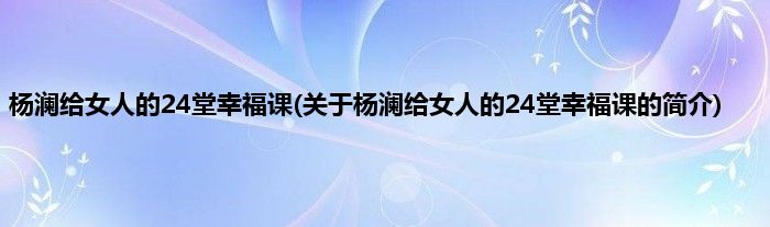 大家好,杨澜给女人的24堂幸福课,关于杨澜给女人的24堂幸福课的简介很多人还不知道,现在让我们一起来看看吧!