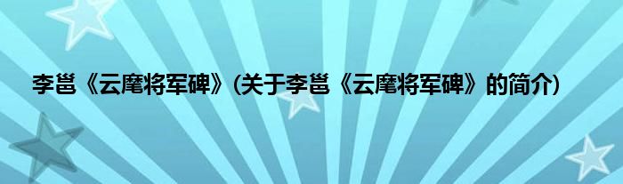 本文关于李邕《云麾将军碑》的简介就讲解完毕,希望对大家有所帮助。