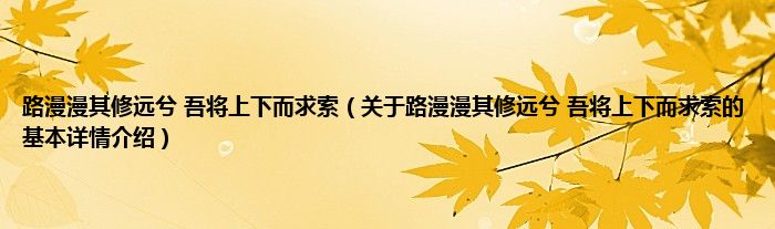 本文关于路漫漫其修远兮 吾将上下而求索的基本详情介绍就讲解完毕,希望对大家有所帮助。