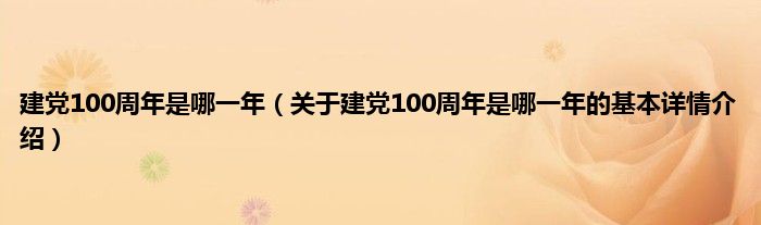 本文关于建党100周年是哪一年的基本详情介绍就讲解完毕,希望对大家有所帮助。