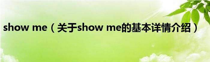 本文关于show me的基本详情介绍就讲解完毕,希望对大家有所帮助。