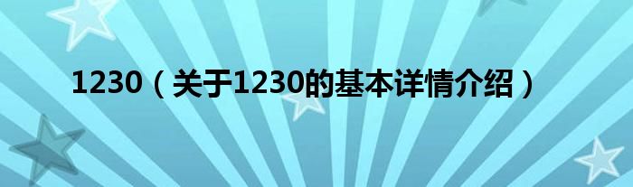 本文关于1230的基本详情介绍就讲解完毕,希望对大家有所帮助。