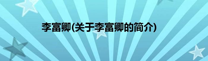 本文关于李富卿的简介就讲解完毕,希望对大家有所帮助。
